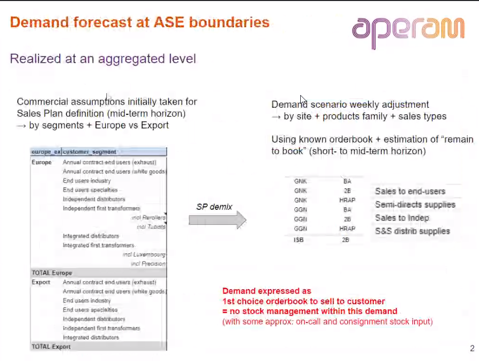 Customers send forecasts but data cannot be used in central planning because forecasting only on aggregated level (only used locally).