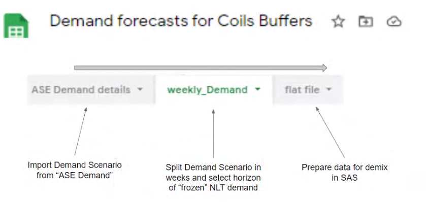 Extra tool (Excel) needed to disaggregate demand forecast on article and weekly level for production and buffer planning.