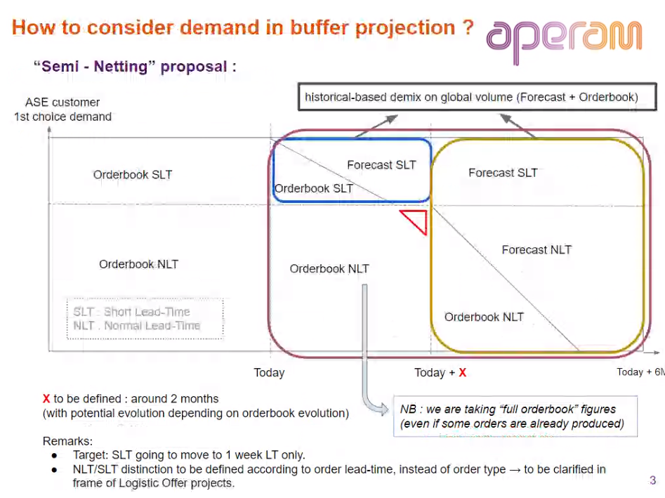 - Forecast done on aggregation per site (= only one value per month per site), split into SLT (Short lead time) and NLT (Normal lead time)