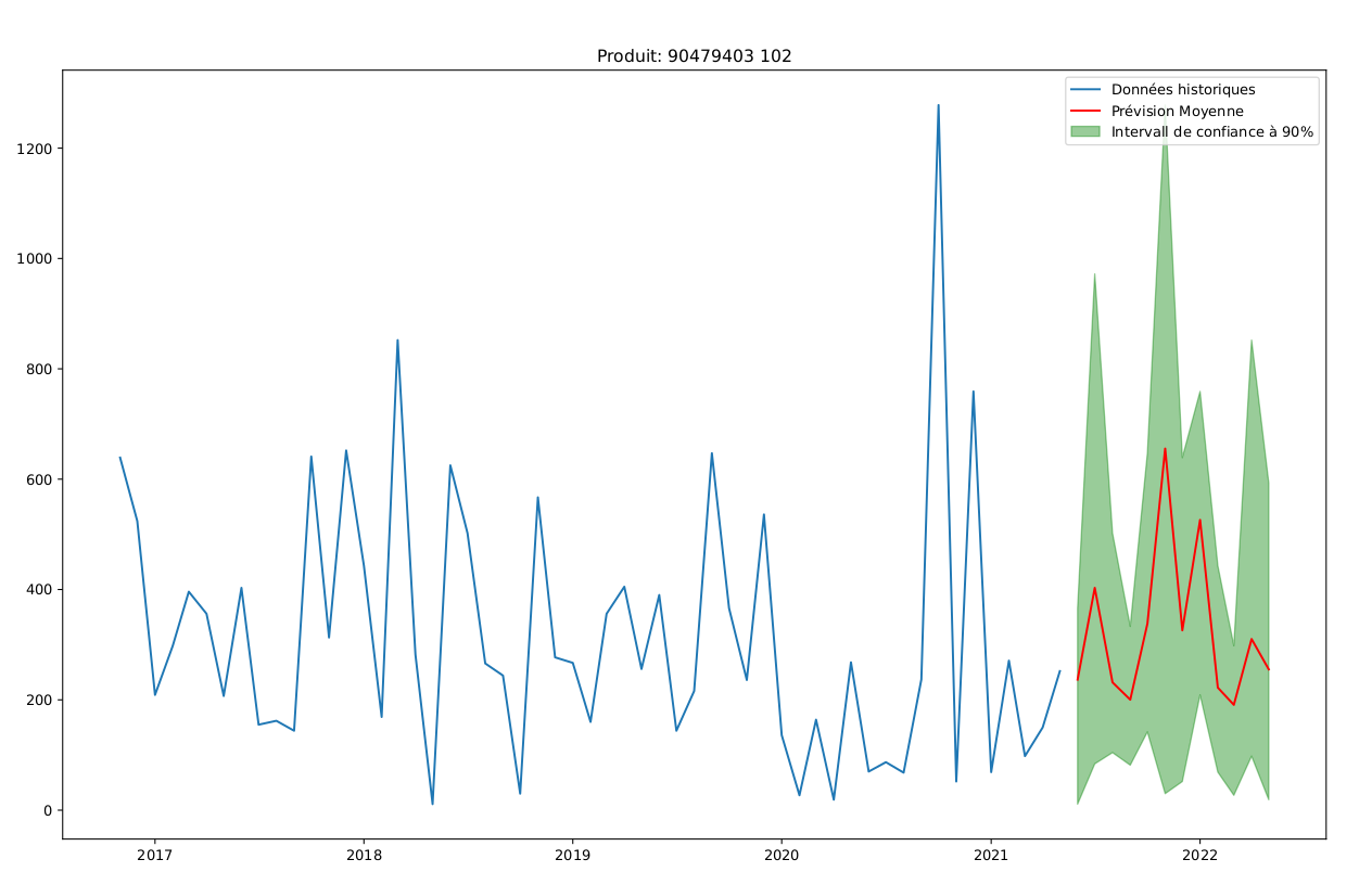 for each product a corresponding graph with the past demand, the forecast and the confidence intervals.
